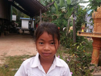 Khorn Thida has three siblings with two brothers and one sister. She is the first child in the family. There are five members of the family. Her parents are farmers. Her mother works at Garment factory in the dry season and her father works as a sand carrier for extra income. They own the 2 of land which produces 7 baskets of rice per season. Her parents earn 100$ per month. She always helps her parents ‘work and plays with her neighbors in her free time. In the future, she wants to be a doctor.