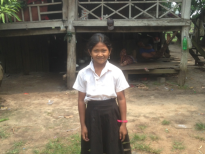 There are five members in her family, parents, one son, and two daughters including her. Mengly is a second daughter in her family. Her father is a bicycles repairman in the village, her mother is a housewife. Mengly’s father can earn about $110 a month but this income is not regular, it depend on the month. This money that father earns from his occupation cannot support his family.