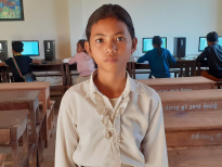Kimhoun currently lives with her grandmother. However, her grandmother’s health is not so good. Kimhoun everyday walks one km. from her house to the school. She fears that she may not be able to finish middle and high school because of the situation; however, she does not want to stop and she really wants to finish high school.