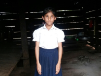 Sreynoun has five brothers and six sisters. She is the eighth child in the family. Her parents are farmer they have 2 hectares of farmland to grow cashew trees. In the harvest season of cashew, they can gather about 500 kg of cashews, some bananas and vegetables, in total they can earn about $700 per year. Out of the products that they can get from the farm, her parents do not have any other extra job to earn extra money to support the family. However, her parents are always pushing Sreynoun to school every day. She gets 500 riels a day for her study pocket money and she walks to school.