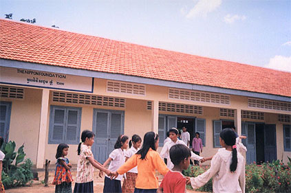 Children playing in front of the Chhe Teal Chrum Nippon Foundation School. (July, 2001)