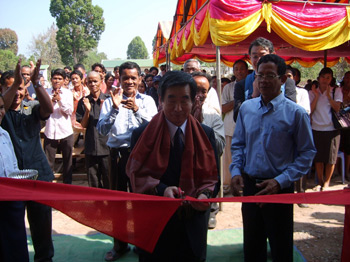 Mr. Ito cuts the ribbon, at the opening ceremony of the Chop KDDI School.